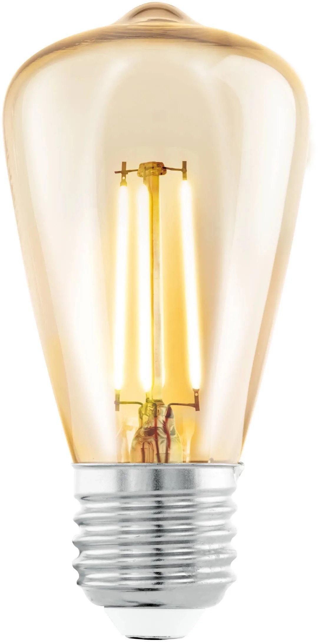 Az Eglo ST48 LED izzó egy villanykörte formájú, E27 foglalattal rendelkező, filament izzó, melynek teljesítménye 4 W, fényereje 270 lumen. 2200 K színhőmérsékletű, melegfehér fényt bocsát ki, ezért ideális a lakótérben való használatra. Az izzó borostyánszínű üvegből készült, megjelenése aranyszínű, divatos vintage formájú. Ezáltal nemcsak normál izzóként alkalmas, hanem bármilyen lakótérben akár dekorációs elemként is használható.
