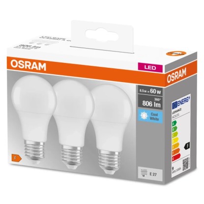 Osram Base LED izzó A60 E27 hidegfehér 3 db