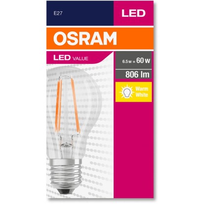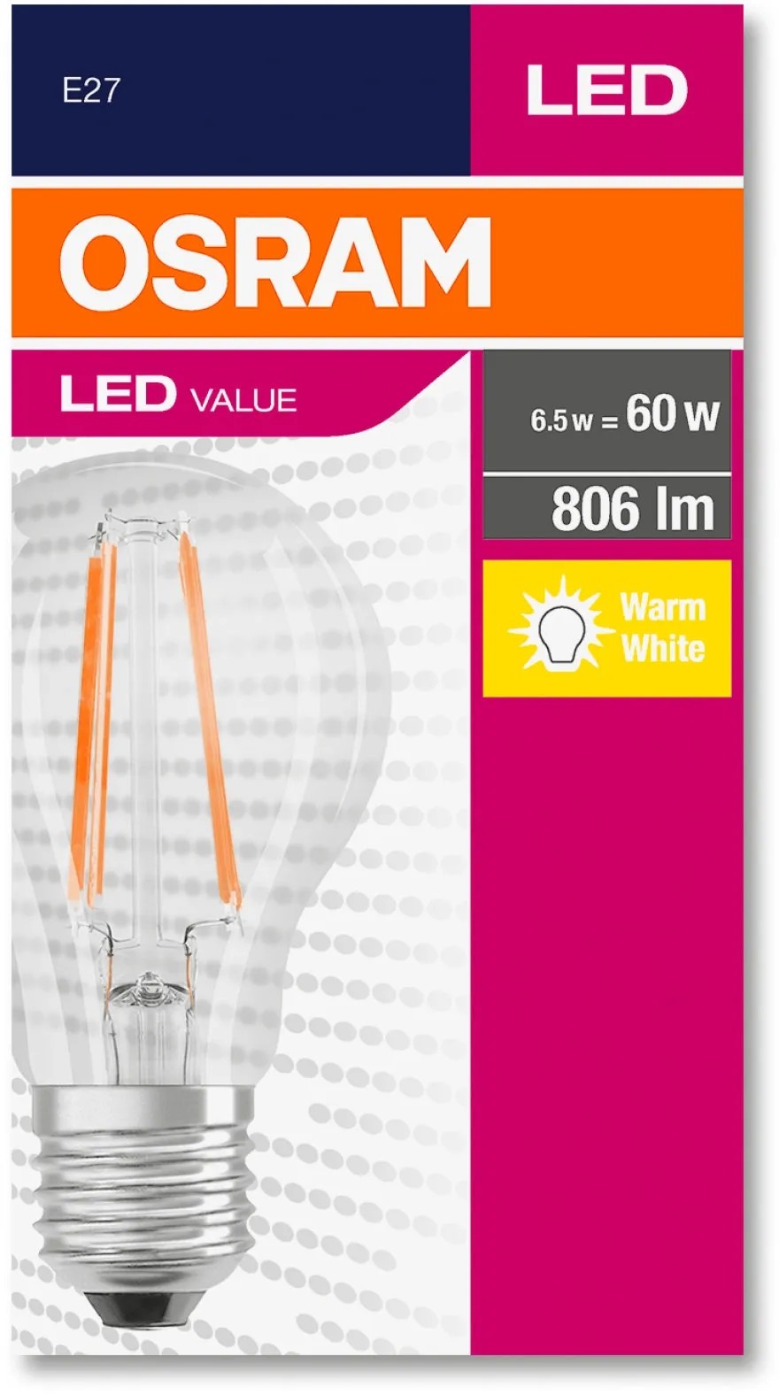 2700 K színhőmérsékletével az Osram E27 LED-izzó lakóterekbe ideális választás. Ugyanakkor átlátszó színe minden berendezési stílushoz illik. Az izzóban lévő izzószál egy klasszikus villanykörtére emlékeztet, és otthonának ipari stílust kölcsönöz.