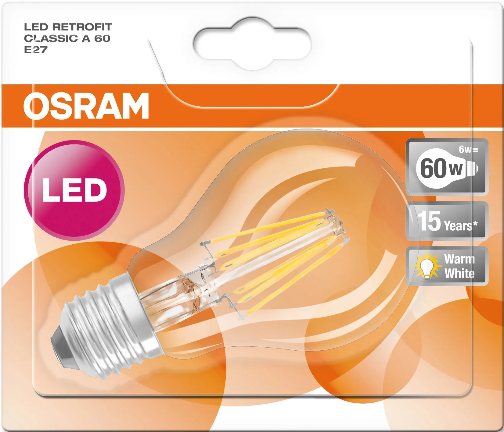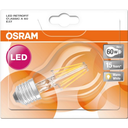 Az Osram LED-es izzó különösen hatékony és kellemes megvilágítást tesz lehetővé, a klasszikus izzó- és reflektorlámpákra hasonlító, nemes megjelenésével pedig hozzájárul lakása igényes kialakításához. A modern LED-szálas technológiának köszönhetően az izzó felmelegedési idő nélkül, azonnal 100%-os fényt biztosít. A lámpa 300-ig terjedő fényszórási szögével és 15 000 órás élettartamával a háztartásokban és általános világításként is használható, de beépített dekorációs elemek megvilágítására is alkalmas.