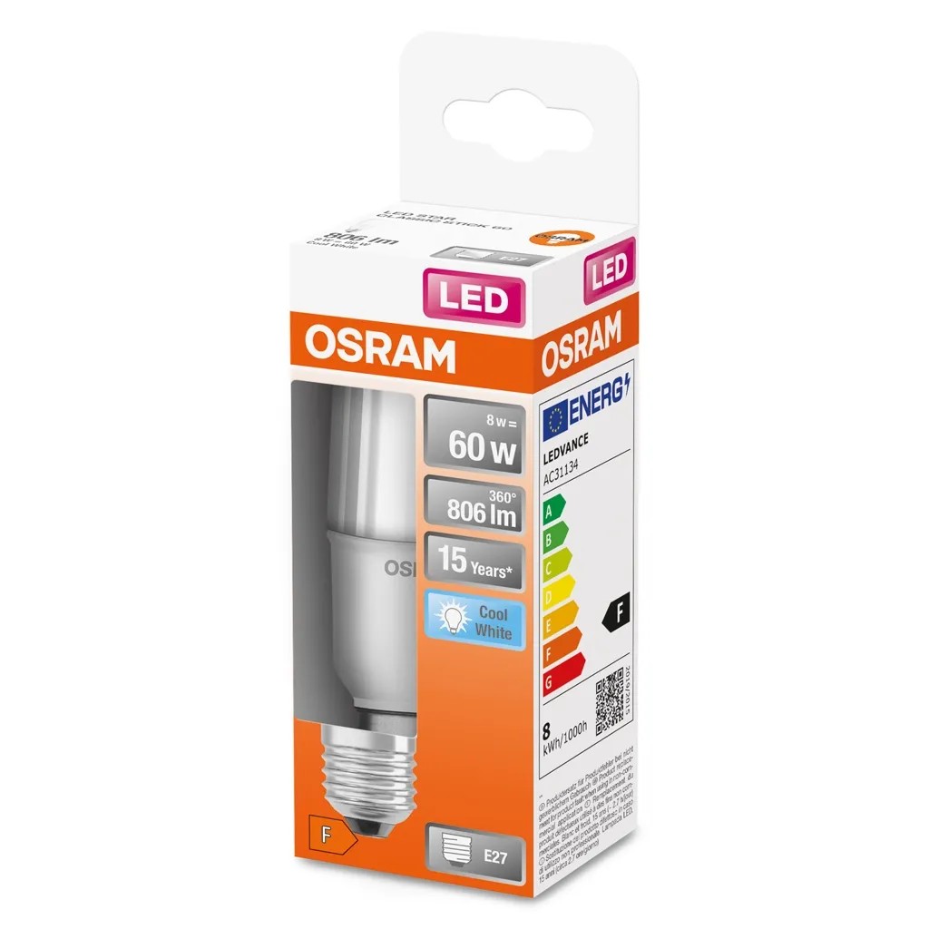 Osram LED Star Stick energiatakarékos fényforrás E27-es foglalattal, hideg színhőmérséklettel.