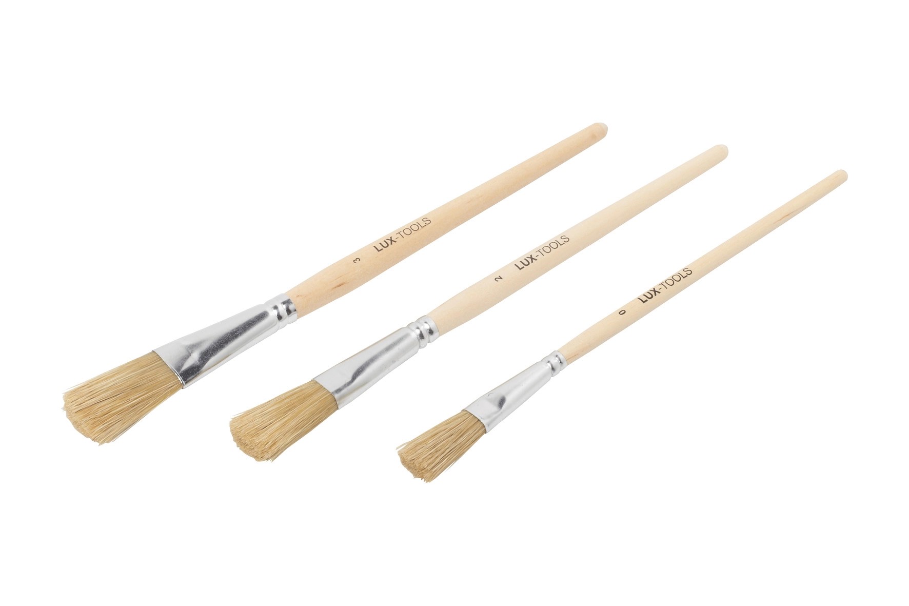 A 3 részes LUX-TOOLS zománcecsetkészlet *** 3 különböző méretű (0, 2 és 3) zománcecsetet tartalmaz. Az ecsetek világos természetes sörtékkel, valamint fanyéllel rendelkeznek, és kiválóan alkalmasak javítási munkákhoz és sok más feladathoz.