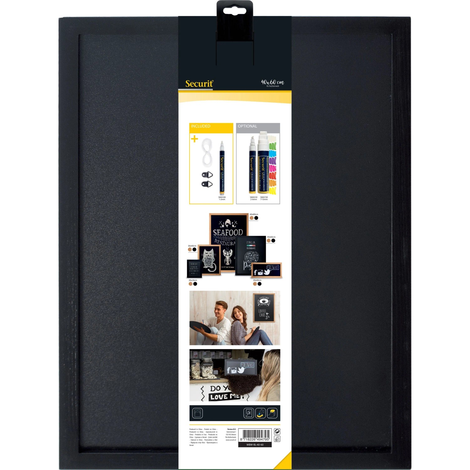 Kréta tábla 40 cm x 60 cm Securit lakkozott fekete + krétamarker