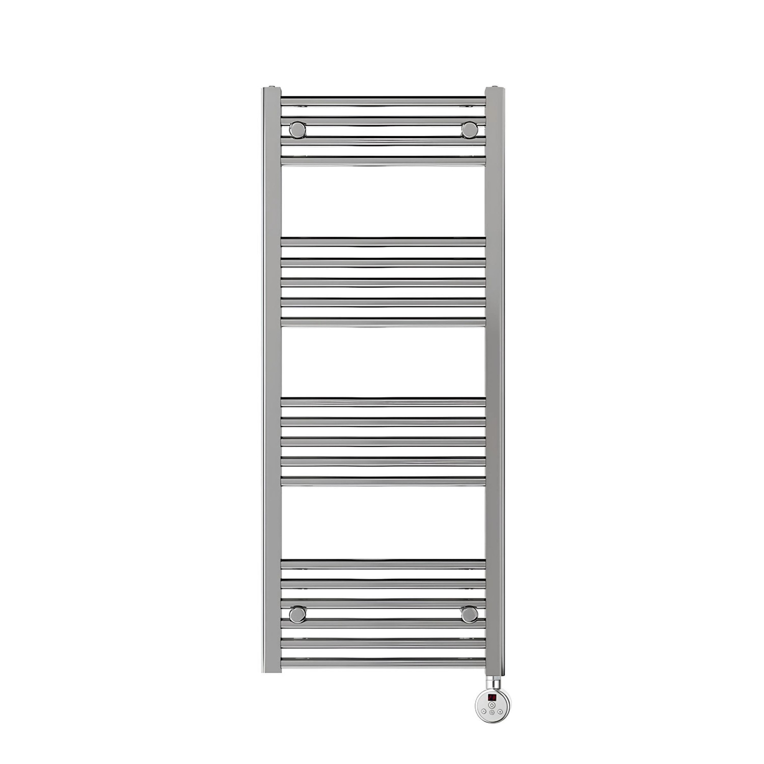 Hunor 500 mm x 1200 mm elektromos fürdőszobai, törölközőszárítós radiátor, króm, egyenes, digitális, 700W teljesítménnyel.