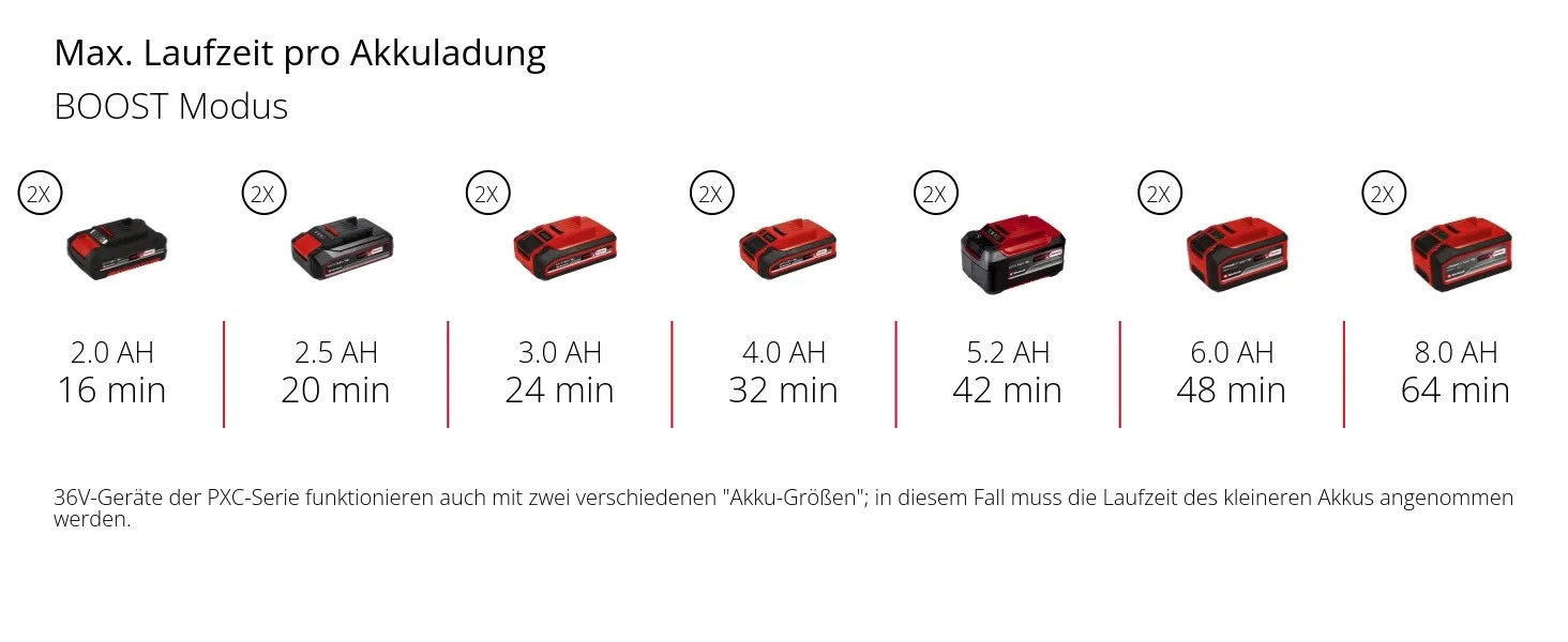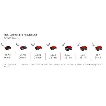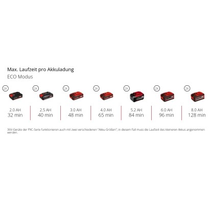 A szivattyú két teljesítménymóddal rendelkezik: Boost üzemmód a maximális szállítási teljesítményért, és Eco üzemmód a hosszabb akkumulátor-élettartamért alacsonyabb szállítónyomás mellett. Óránként akár 3400 l szállítási kapacitásának köszönhetően az akkumulátoros vízszivattyú nagy mennyiségű vizet is képes mozgatni. Maximális szállítómagassága 37 m, ami 3,7 bar maximális szállítónyomásnak felel meg.