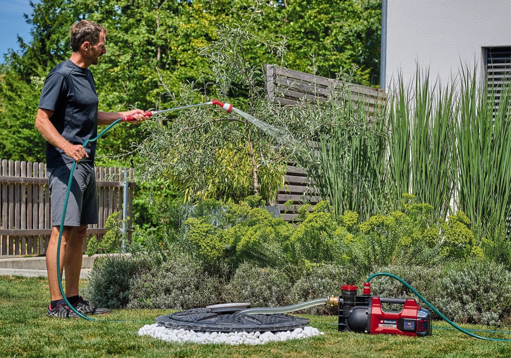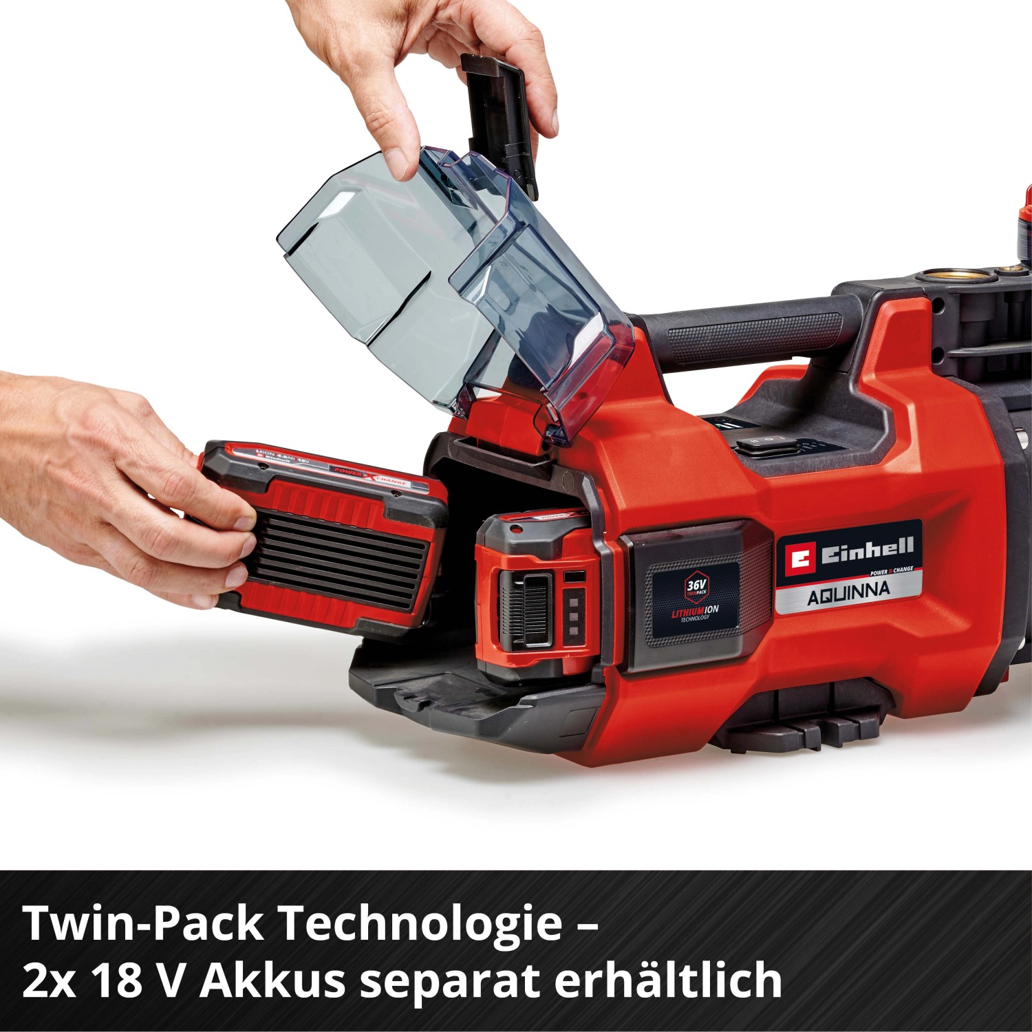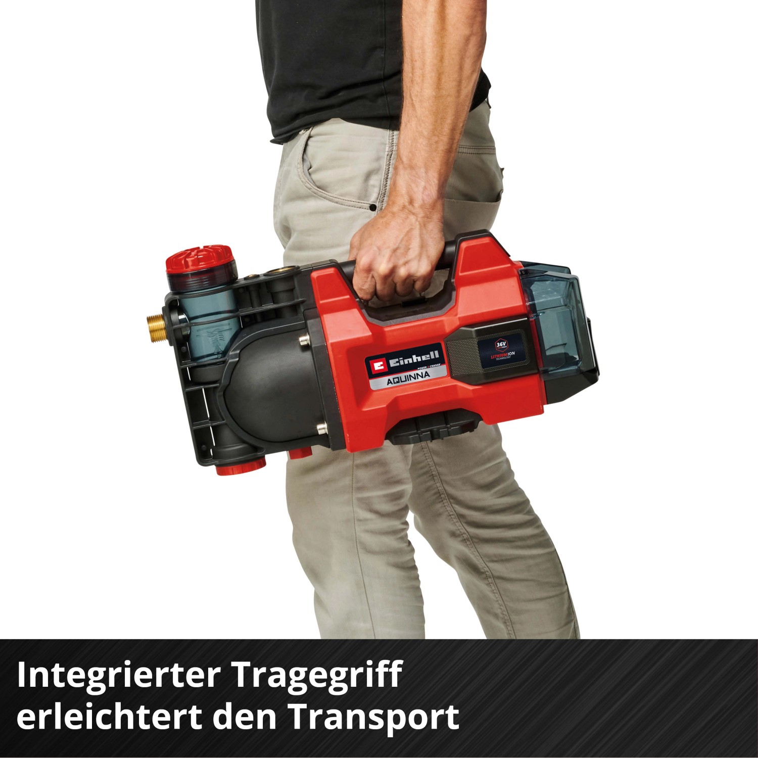 Az Einhell Aquinna 36/34 akkumulátoros kerti szivattyú egy olyan nagy teljesítményű szivattyú, amely sokféleképpen használható a házban és a kertben - még olyan helyeken is, ahol nincs elektromos csatlakozás - hogy A pontból B pontba szivattyúzza a vizet. A rugalmas Power X-Change termékcsalád része, amelyben akkumulátorok, töltőkészülékek és rendszerkészülékek kombinálhatók egymással. Maximális teljesítményt biztosít a 36 V-os Twin-Pack technológia, amely két 18 V-os akkumulátor erejét ötvözi.