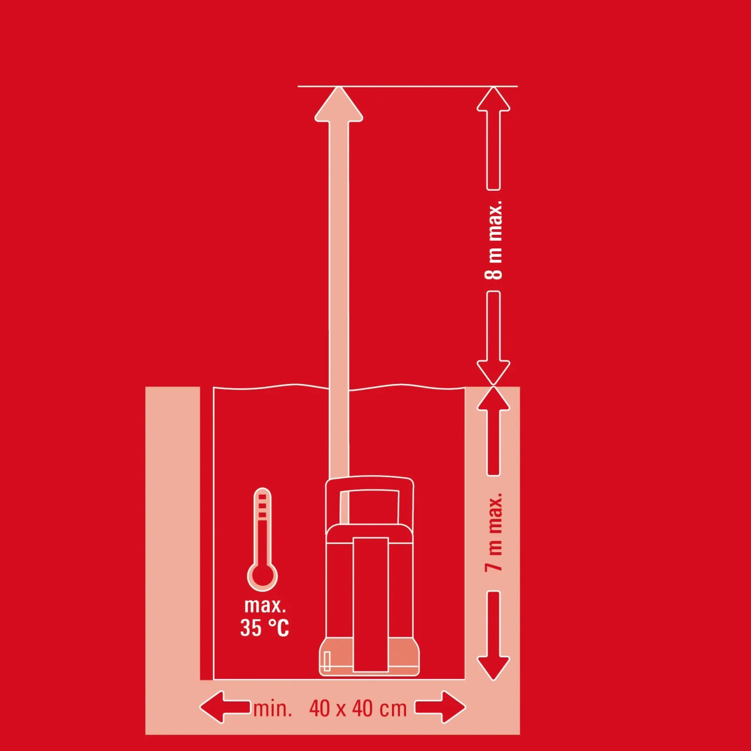 A tisztavíz-szivattyú rendkívül hatékony, teljesítménye 400 watt ECO-Powerrel, így 7 m maximális merülési mélység mellett óránként akár 9500 l tiszta víz szállítására is alkalmas. Visszacsapó szeleppel felszerelt, és max. 35 °C-os vizet képes feldolgozni. A szivattyú lapos szívással működik 1 mm-es maradékvízszintig, ami szinte száraz eredményt biztosít.