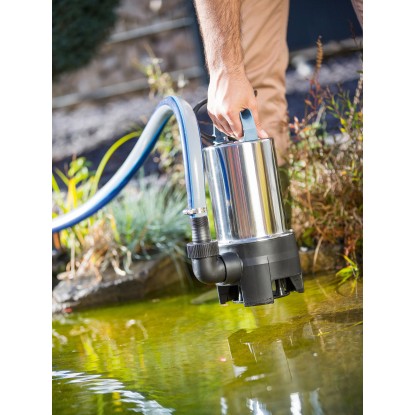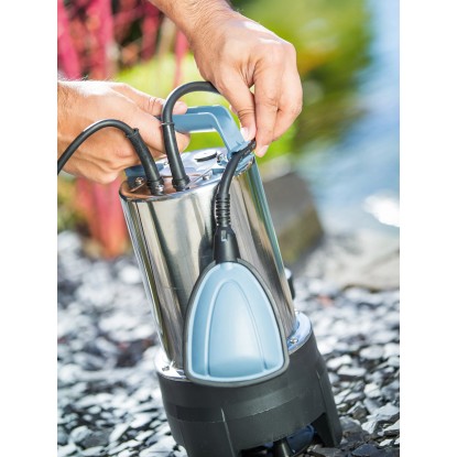 Az úszókapcsoló a beállítástól függően automatikusan bekapcsolja a búvárszivattyút, amikor emelkedik a vízszint, és a szárazon futás megelőzése érdekében csökkenő vízszintnél automatikusan kikapcsolja. A kifogástalan működéshez az úszókapcsolónak szabadon kell mozognia. A használat helyére történő szállításhoz a szivattyú állítható fogantyúval rendelkezik. Háza kiváló minőségű rozsdamentes acélból készült, amely hosszú élettartamot ígér. 10 m hosszú kábellel szállítjuk. A szállítóteljesítmény optimális kihasználás érdekében 25 mm (1") átmérőjű tömlő használatát javasoljuk. A különböző tömlőkhöz a szivattyú univerzális csatlakozóval rendelkezik.