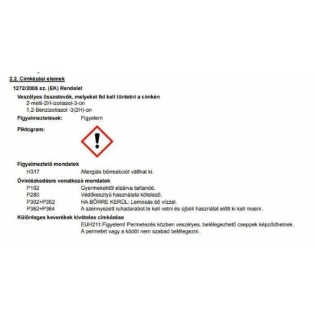 | Izotiazolinonra allergiásoknak is alkalmas: | Nem alkalmas |