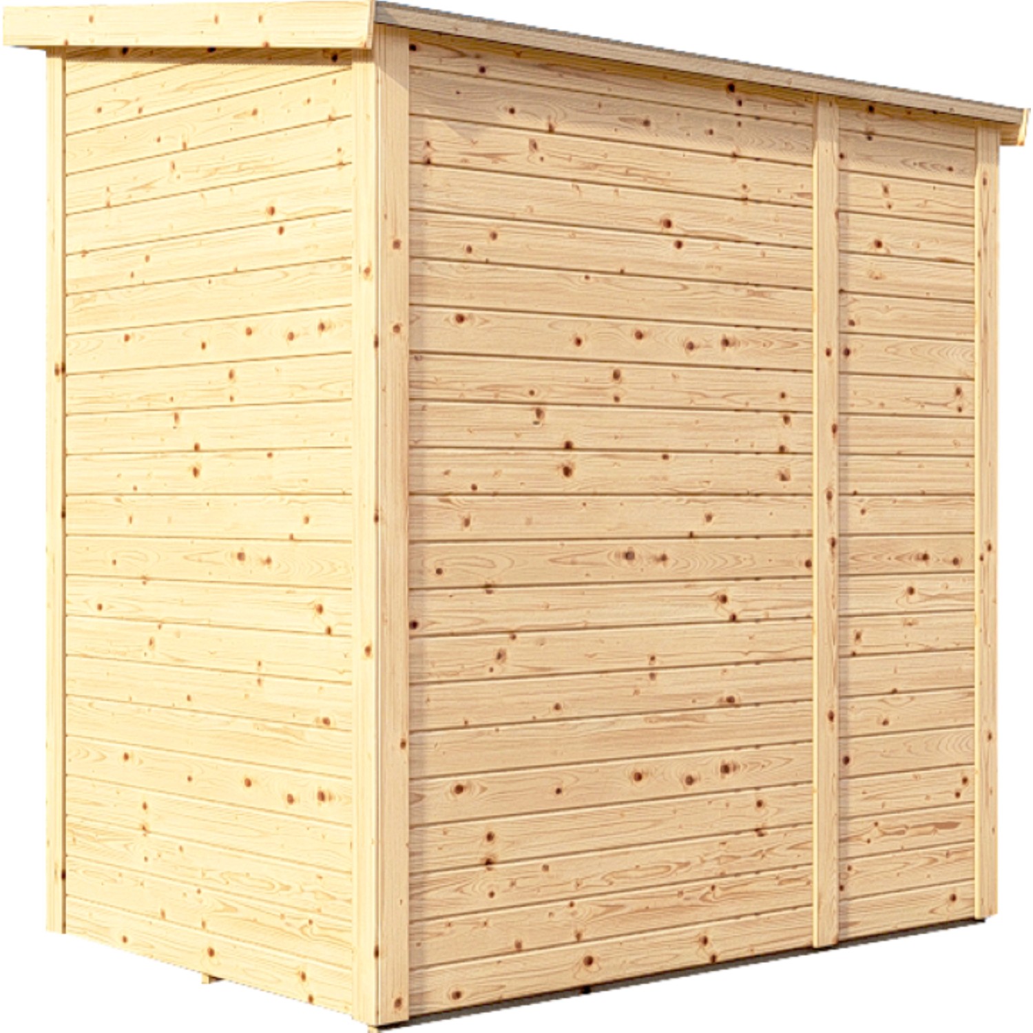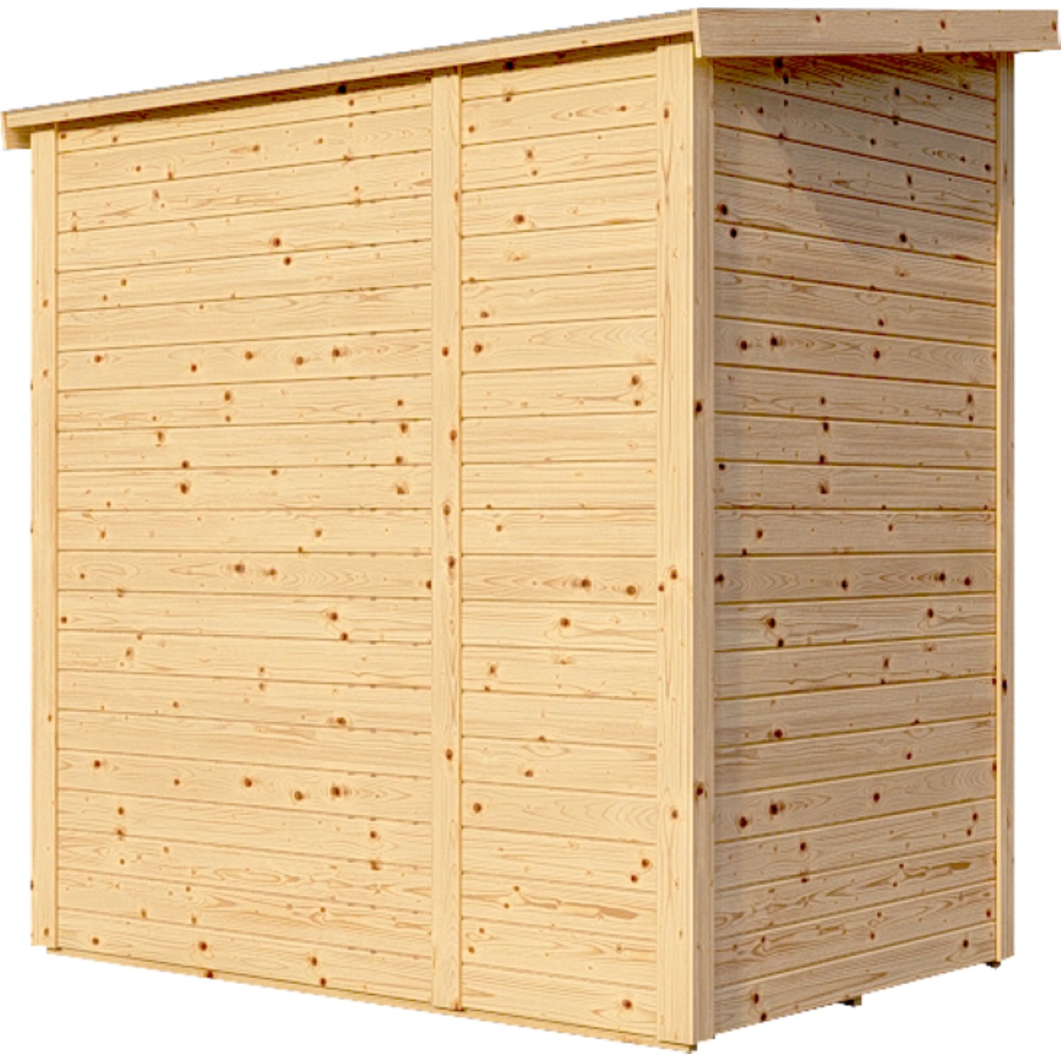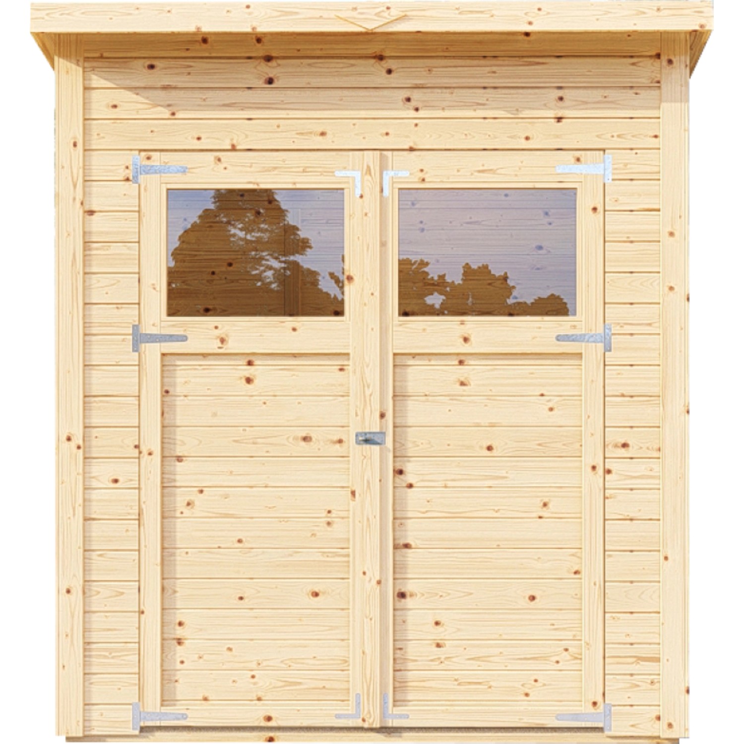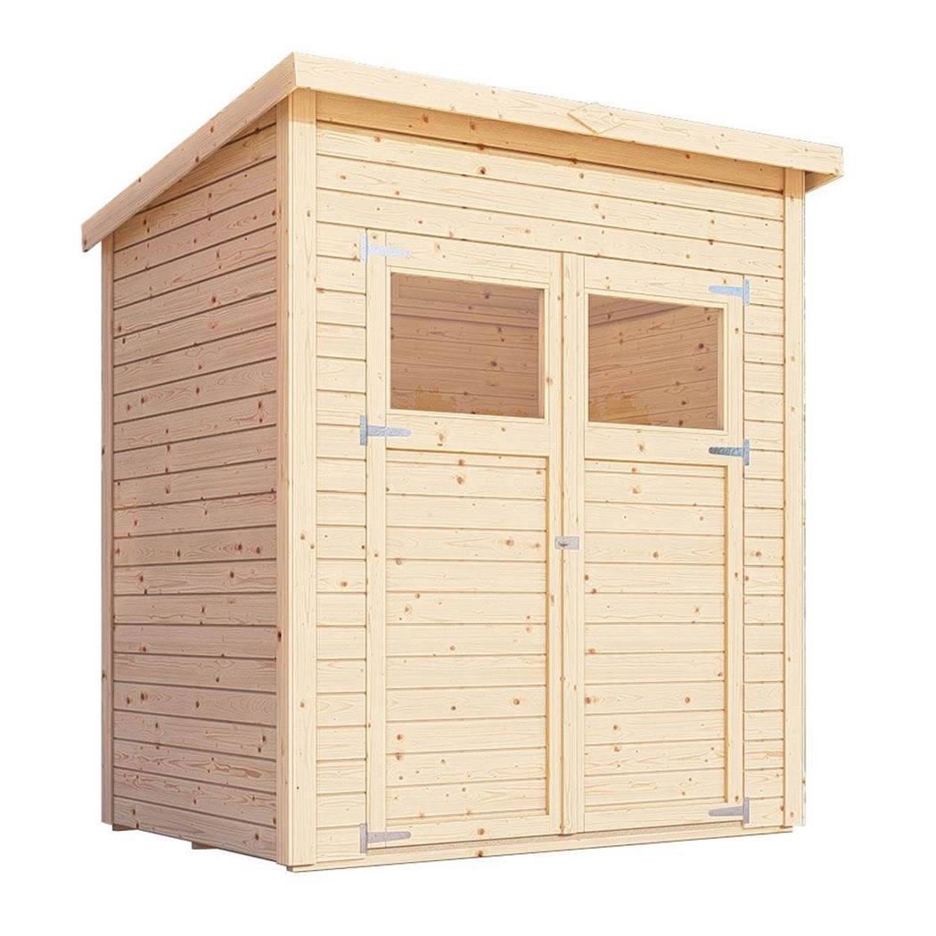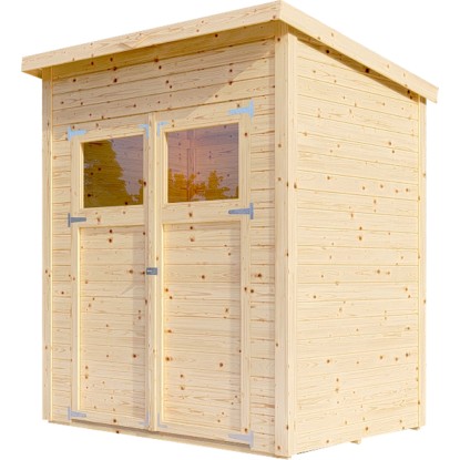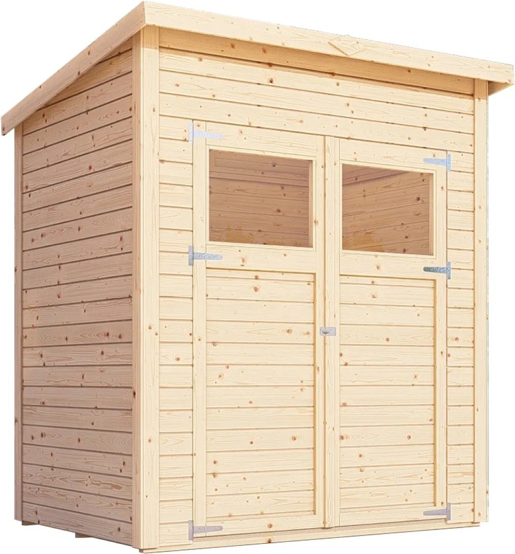 A kezeletlen felület megőrzi a természetes megjelenést a famintázatnak köszönhetően. Az időjárás hatásai elleni védelem érdekében a felületet egyedileg festéssel vagy lazúrozással lehet kezelni. A faház ajtajai üvegezett fénykivágásokkal és vasalatokkal rendelkeznek a lakat felszereléséhez, hogy a készülékek biztonságban legyenek.
