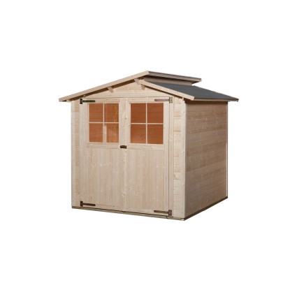A kerti ház kezeletlen fából készült dugós és csavaros rendszerben. A natúr felület megőrzi a természetes megjelenést a famintázatnak köszönhetően. Az időjárás hatásai elleni védelem érdekében a felületet egyedileg festéssel vagy lazúrozással lehet kezelni. A kerti ház összeszereléséhez nem kell profi mesterembernek lennie. A praktikus dugós és csavaros rendszernek köszönhetően az összeszerelés gond nélkül megy, és az egyes részek könnyen összeköthetők. A ház stabil szerkezetű, falvastagsága 19 mm. Az eltolt nyeregtető maximális hóterhelése 75 kg/m2. A gerincmagasság 221 cm, ami kellemes mozgásteret biztosít a fejnek.