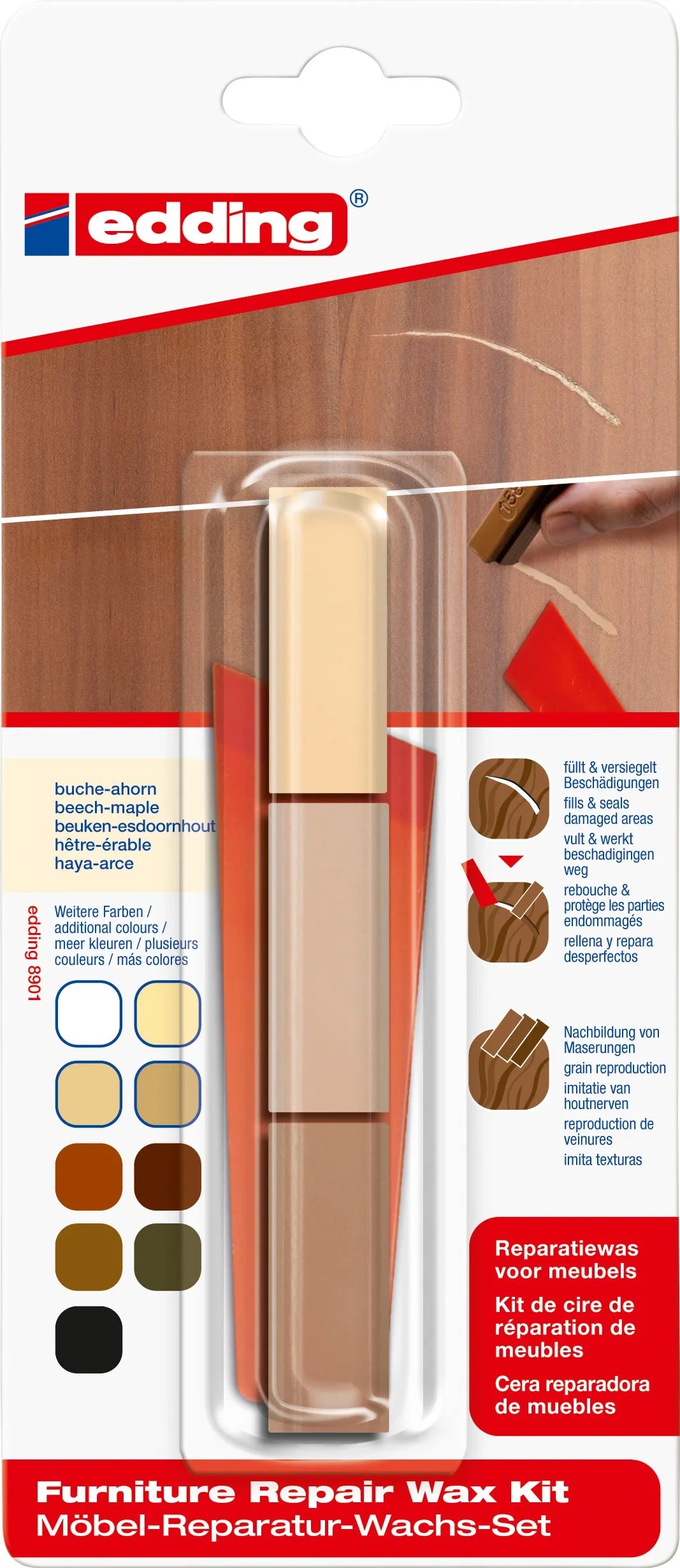 Edding 8901 bútorjavító wax készlet bükk/juhar