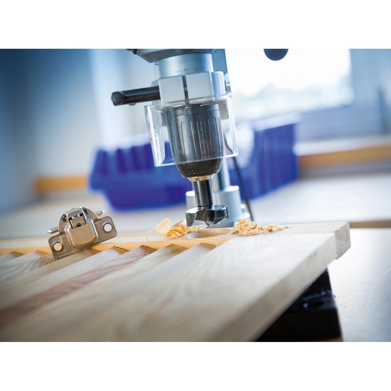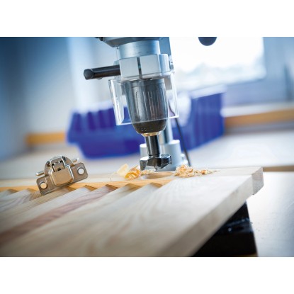 A kivetőpánt-lyukfúró csavarodás- és hézagmentesen fogható be és rögzíthető a fúrógépbe. Az elhivatott barkácsmestereket kifogástalan működéssel örvendezteti meg, és hosszú élettartam és megbízhatóság jellemzi. A kivetőpánt-lyukfúróval egy hasznos segítséget kap az egyedi megoldásokhoz. Egy hasznos darabbal egészítheti ki felszerelését, amelyet ideálisan használhat, ha kivetőpántok felhelyezését kell előkészítenie szekrényajtókon, lenyíló ajtókon vagy összecsukható asztalokon.