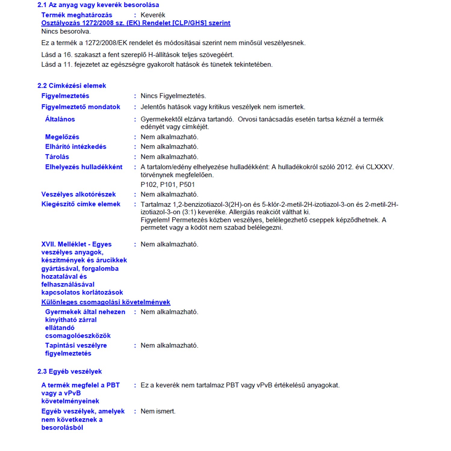 | Izotiazolinonra allergiásoknak is alkalmas: | Alkalmas |