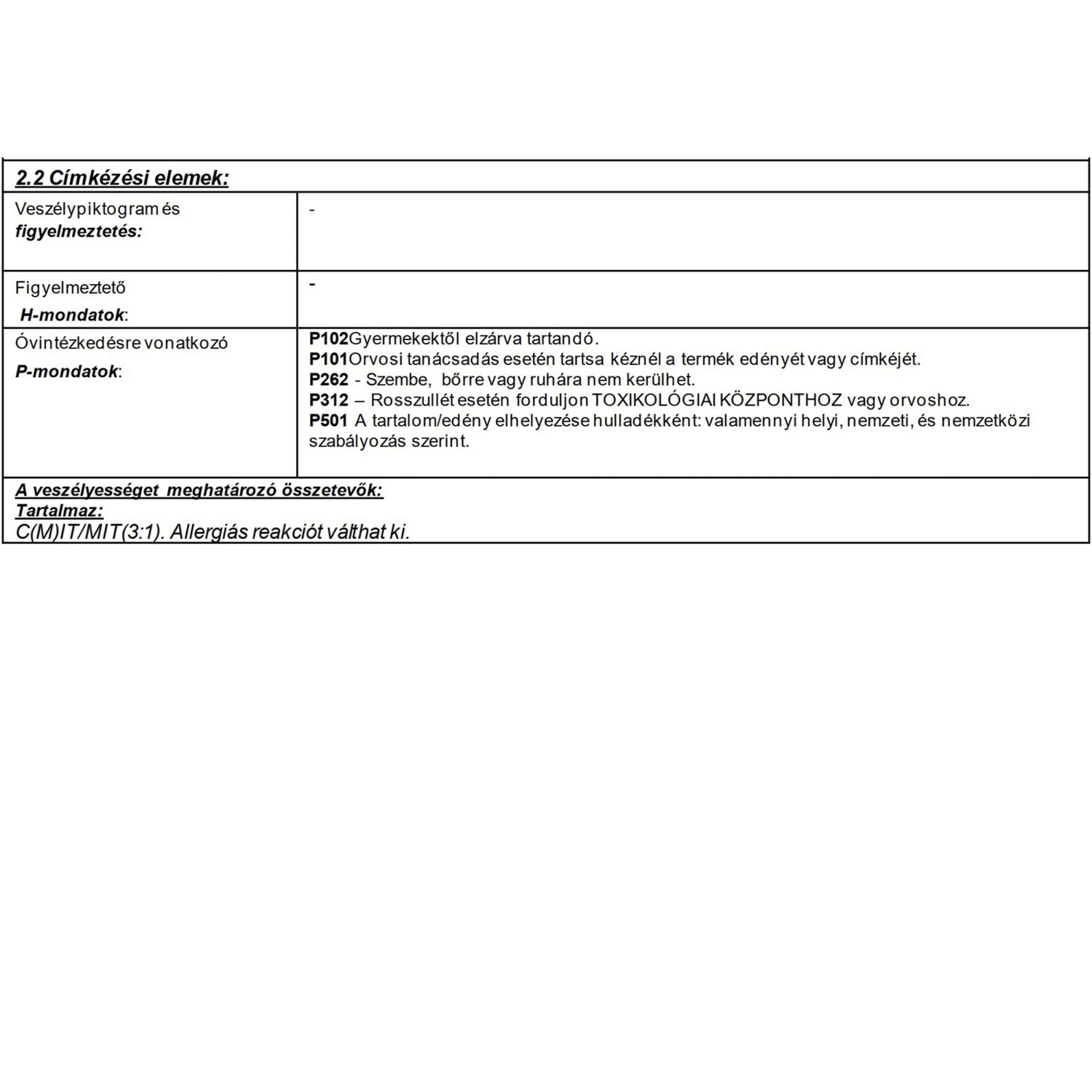 | Alk. gyermekjátékhoz (DIN EN 71-3 bevizsg.): | Gyermekjátékhoz nem alkalmas |