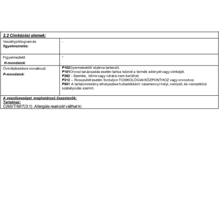 | Átvonható kb. elteltével: | 4 h |