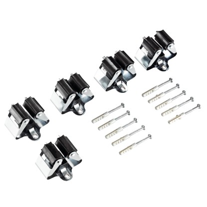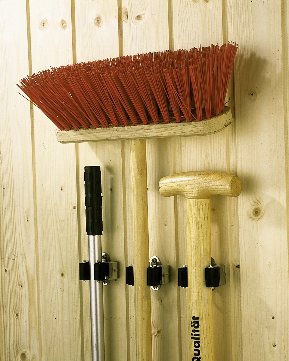 Az 5 részes szerszámtartó készlet különböző nyeles szerszámok tárolására alkalmas. A műanyag tartópofák minden nyeles szerszámnak megfelelő elhelyezkedést biztosítanak. A csomag részét képezik a rögzítőelemek (a csavarok és tiplik).
