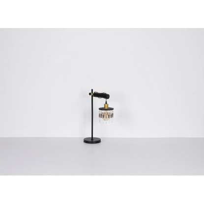 Ez a falilámpa lenyűgöz gyönyörű üvegkristályos kialakításával, valamint fekete és arany színével. A falilámpa egy füstös üvegkristályokkal ellátott ernyőből áll, amely E27-es foglalattal van ellátva. 25 cm-es kinyúlással egy arany kábelhez és egy fekete farönkhöz van rögzítve. Az E27 foglalat révén meghatározhatja saját fényforrását, legfeljebb 60 watt teljesítményig.