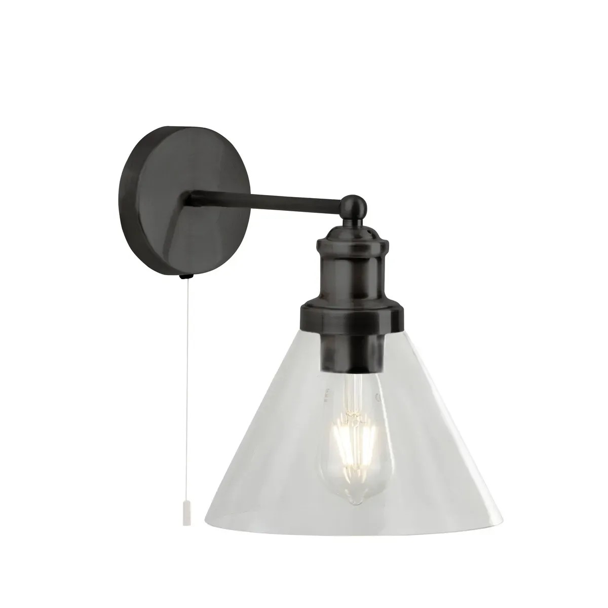 A Pyramid fali lámpa tökéletesen alkalmas éjjeliszekrények vagy konyhai helyiségek fölé, klasszikus design modern csavarral. A fekete fém kivitelben, átlátszó üvegárnyékolóval tervezett termék nagyszerű választás mindenkinek, aki szeretné frissíteni a belső terét.