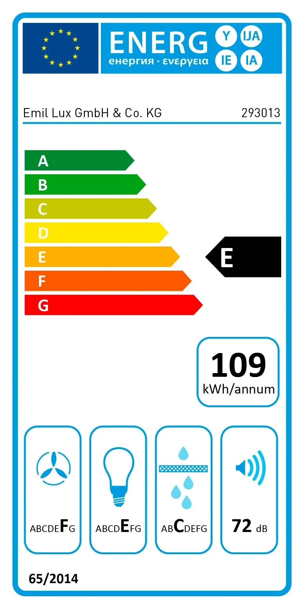 OBI, EEC: E, fali páraelszívó, DA-W 404/90, rozsdamentes acél