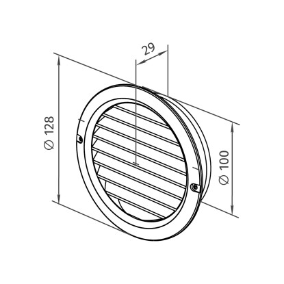 A sötétszürke színű, szúnyoghálóval ellátott fali szellőző különösen alkalmas 100 mm átmérőjű nyílásokhoz. Méretei: 2,9 cm x 12,8 cm átmérő. A fali szellőző -25 °C és +90 °C között hőálló, és műanyagból készült.