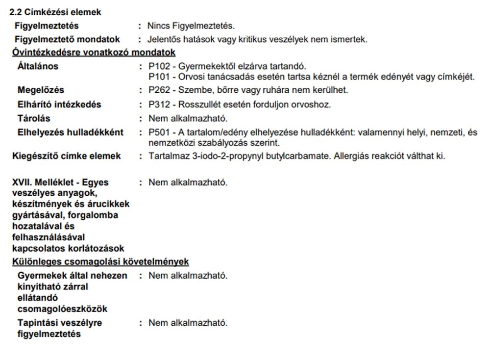 | Konzerválószermentes: | Tartósítószerekkel |