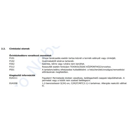 | Fogyasztás m²-enként, ml-ben: | 16 ml |