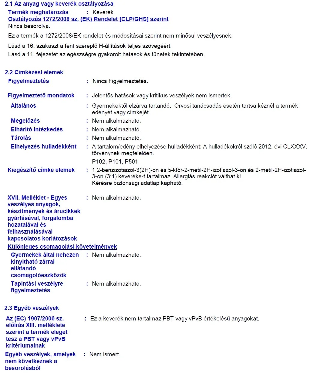 | Izotiazolinonra allergiásoknak is alkalmas: | Nem alkalmas |