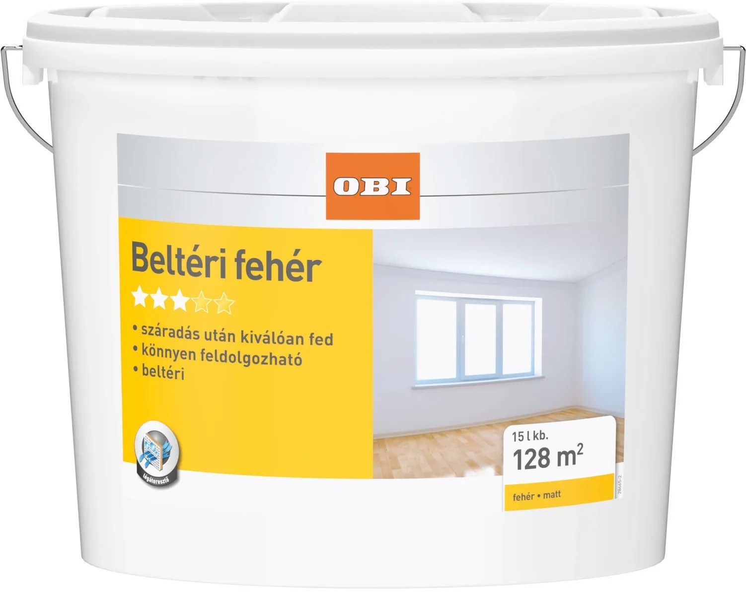 OBI beltéri falfesték 15 l. Jó fedőképességű, páraáteresztő diszperziós festék. Classic színezőpasztával színezhető.