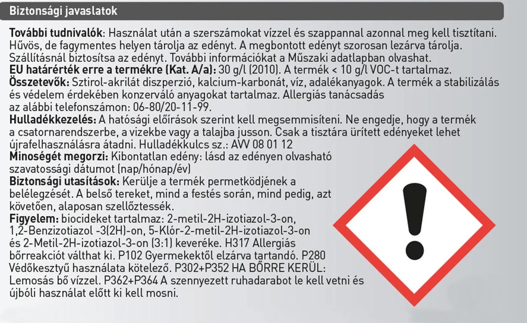 | Alk. gyermekjátékhoz (DIN EN 71-3 bevizsg.): | Gyermekjátékhoz nem alkalmas |
