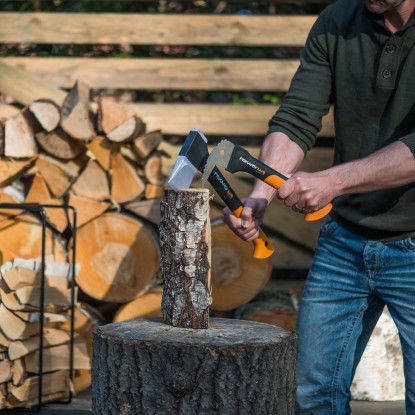 A Fiskars fejszékkel a fa pontosan és hatékonyan hasítható. Az átgondolt kialakítás a fejsze maximális gyorsítását és pontosságát teszi lehetővé.