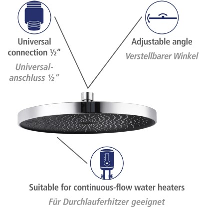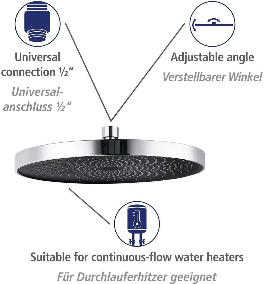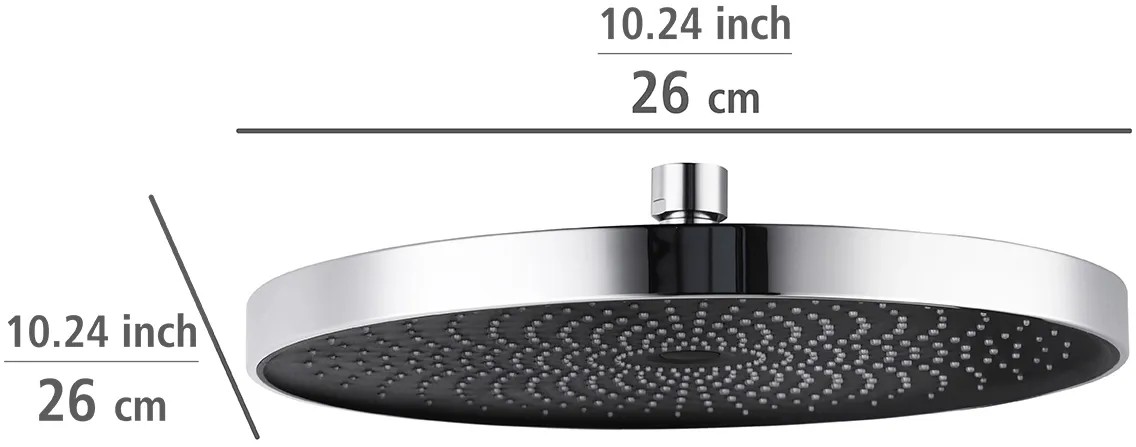 A Wenko Softwater fejzuhany az otthoni fürdőszobát saját wellness oázissá varázsolja. Az esőzuhanyos zuhanyfej ízléses megjelenésével egészen feltűnő. Nem csupán a szép forma, hanem a fényes króm és a matt fekete elemek modern kombinációja is különleges megjelenésűvé teszi. A kiváló minőségű fejzuhany ezáltal minden fürdőszoba belső terét felértékeli.