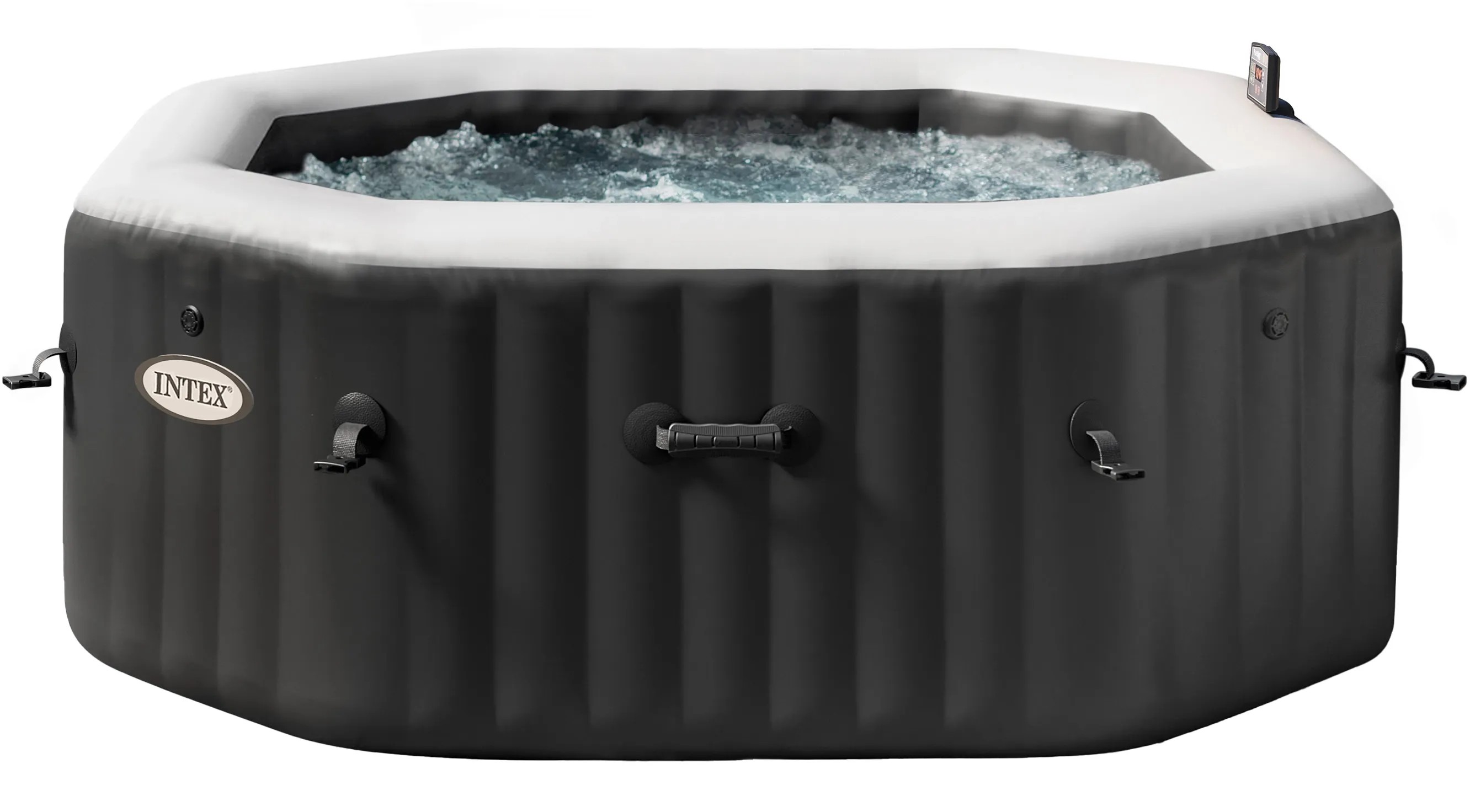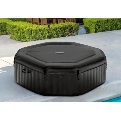 A sósvizes rendszerrel felszerelt Intex PureSpa Octagon Bubble Jet az Intex új masszázsmedence generációjából a legmagasabb színvonalú wellness élményt kínálja Önnek. A 201 cm átmérőjű és 71 cm magas nagyméretű PureSpa masszázsmedence maximum 4 személy számára kínál helyet. 120 légfúvóka, egy nagy teljesítményű 2.200 W-os fűtőberendezés, egy 1.741 l/h teljesítményű keringető szivattyú és egy beépített vízkővédelmi rendszer biztosítja a maximális szórakozást minimális erőfeszítéssel. A legmodernebb vízkezelő rendszer és a korszerű sósvizes rendszer kombinációja optimális vízminőséget biztosít. A nagy szilárdságú, 3 rétegben laminált vinil a szabadalmaztatott Fiber-Tech kialakítással még a szélsőséges terheléseknek is könnyedén ellenáll. A zárható szigetelő takaró biztonságot nyújt és minimálisra csökkenti a fűtési költségeket.