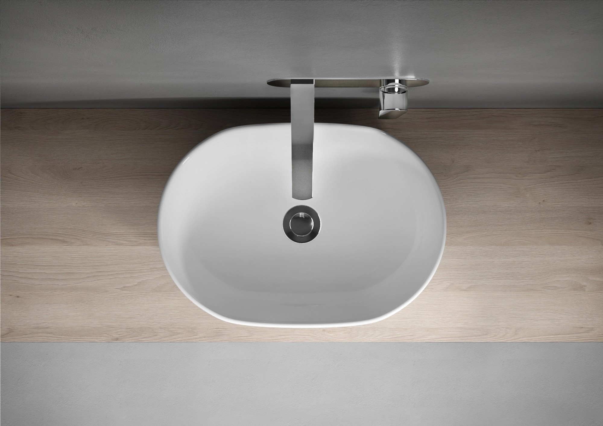 A MODUO 50 ovális pultra építhető mosdó kerámiából készült - vékony, 8 mm-es falakkal. A dizájnos megjelenésű mosdó tökéletesen illeszkedik a modern fürdőszobai enteriőrökbe. Ez a mosdó CREA, LARGA, MODUO, TIRSO, MILLE, CITY és VIRGO pulttal rendelkező szekrényekre vagy épített pultokra szerelhető fel.