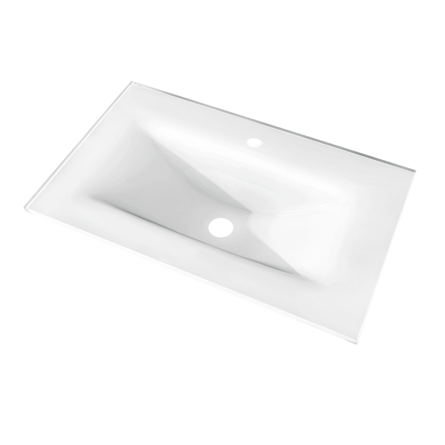 A 75 cm-es üvegmosdó modern megjelenésével elbűvölő benyomást kelt a fürdőben, és így tökéletesen alkalmazkodik minden fürdőszobához. A 15 mm vastag üveg különösen vastag fehér színű, ellenáll a magas hőmérsékletnek és az ütéseknek. A mosdókagyló könnyen tisztítható és különösen strapabíró. A fürdőszoba szekrényre szerelhető mosdót szilikonnal kell rögzíteni a bútorhoz.
