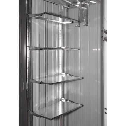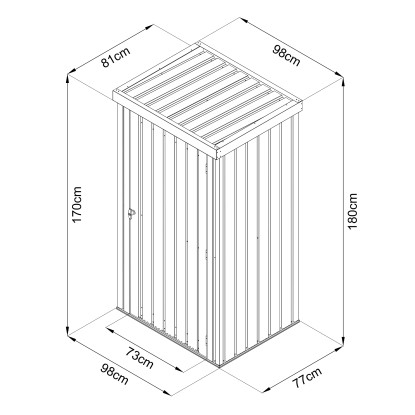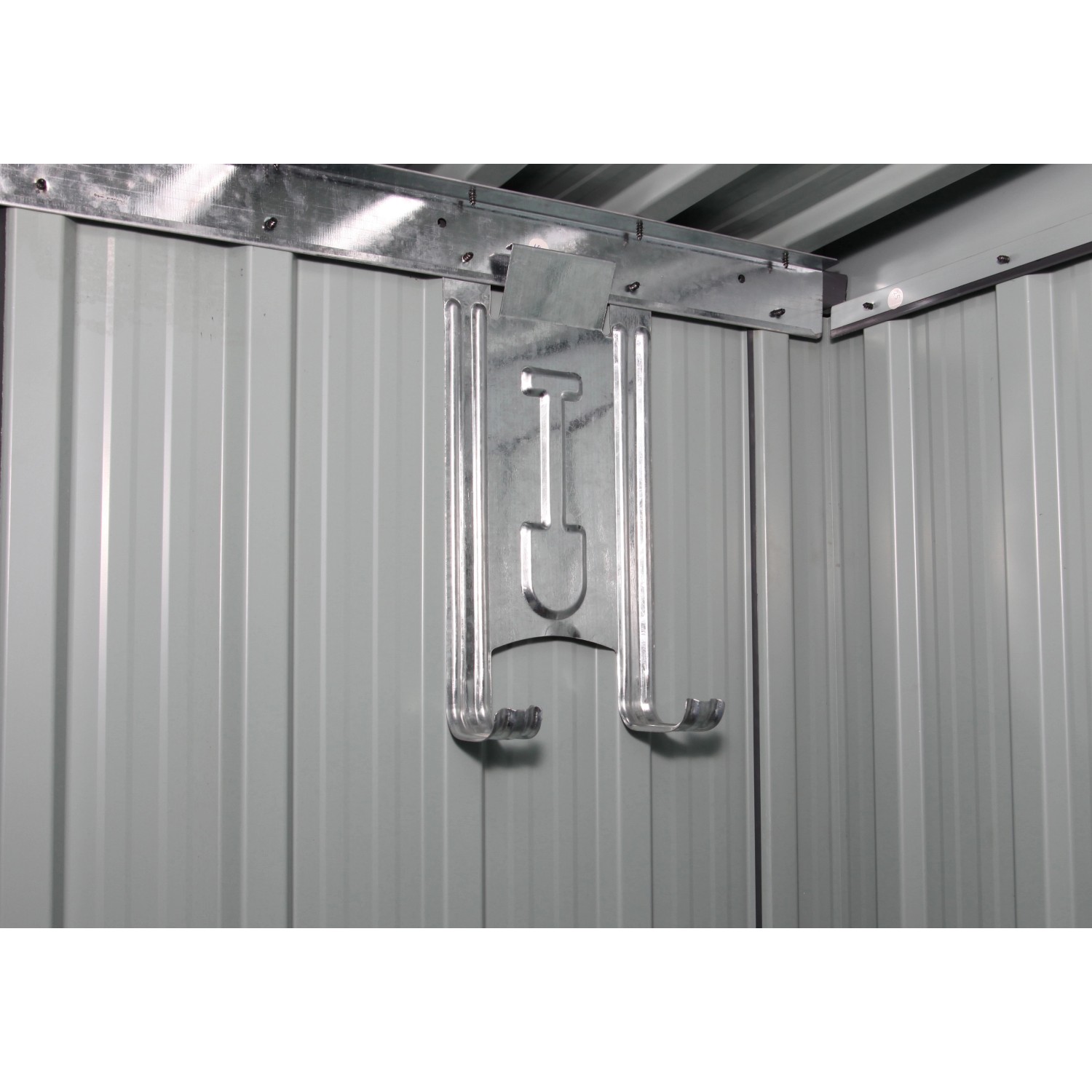 A Florworld fém szerszámosház kompakt kialakítású, alapterülete 0,75 m2. Az igényes kialakítású fém szerszámosház különösen alkalmas különféle tárgyak tárolására. A széles bejárat megkönnyíti a fa kerti házba való belépést, akár nagyobb készülékekkel, kerti eszközökkel, kerékpárokkal és kerti bútorokkal is. Átjárási szélessége 73 cm, átjárási magassága 170 cm.