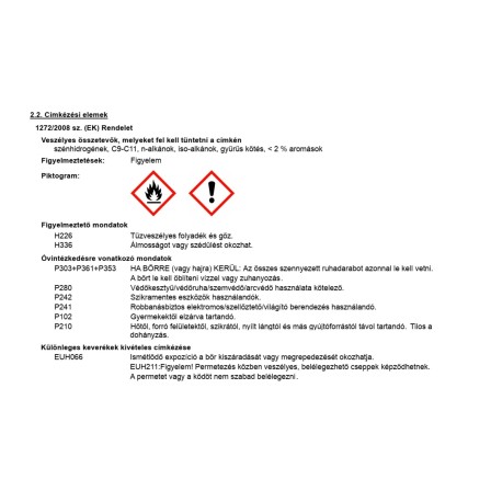 | Fogyasztás m²-enként, ml-ben: | 6 ml |