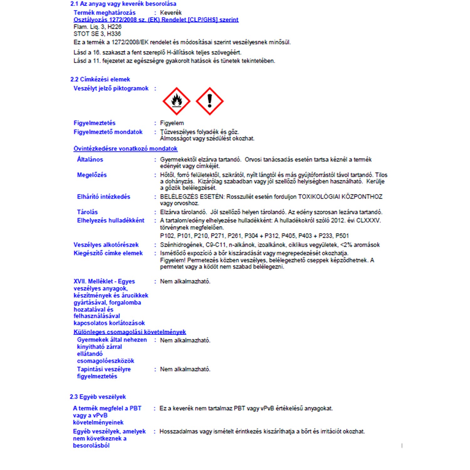 | Alk. gyermekjátékhoz (DIN EN 71-3 bevizsg.): | Gyermekjátékhoz nem alkalmas |