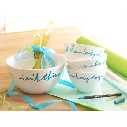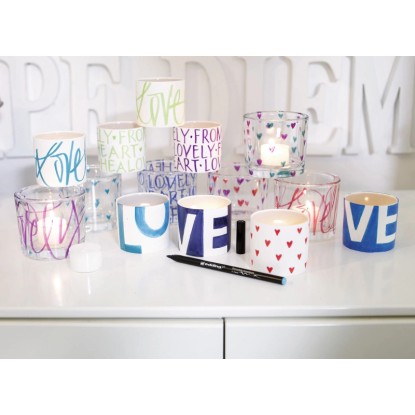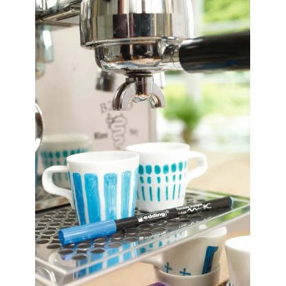 Rostirón nagyobb felületek és finom részletek mosogatásálló, csepegés vagy szétfolyás nélküli festésére, porcelánon, mázas kerámián és hőálló üvegen. A rugalmas ecsetszerű írócsúcs vonalvastagsága 1 mm - 4 mm. A vízbázisú pigmenttinta gyorsan szárad, hőkezeléssel történő rögzítés előtt javítható és különösen fényálló. Az íráskép a porcelánon, hővel történő rögzítést követően, ellenáll a mosogatógépben való mosásnak 50 C-ig. Rostirón nagyobb felületek és finom részletek mosogatásálló, csepegés vagy szétfolyás nélküli festésére, porcelánon, mázas kerámián és hőálló üvegen. A rugalmas ecsetszerű írócsúcs vonalvastagsága 1 mm - 4 mm. A vízbázisú pigmenttinta gyorsan szárad, hőkezeléssel történő rögzítés előtt javítható és különösen fényálló. Az íráskép a porcelánon, hővel történő rögzítést követően, ellenáll a mosogatógépben való mosásnak 50 C-ig. Elérhető 15 színben. Használati utasítás: A dekoráció előtt tisztítsa meg alaposan a mosogatógépben a porcelánt, mázas kerámiát vagy hőálló üveget, majd mosogatószerrel vagy denaturált alkohollal távolítsa el az ujjlenyomatokat vagy a zsírnyomokat. Díszítés közben ügyeljen arra, hogy a festendő felületen ne legyenek ujjlenyomatok. Hagyja száradni 15 percig, sütőben égesse ki 160 C-on 25 percig, majd hagyja a sütőben lassan lehűlni. Az ecsetirónt csak dekoratív célokra használja. Kerülje a porcelán azon részeinek díszítését, amelyeket daraboláshoz, étkezéshez vagy iváshoz használnak. Például csak egy tányér peremét vagy egy bögre külső részét díszítse. Napi tisztítás: kerülje a súrlódást, a dörzsölést és a karcolást, ha az edényt a mosogatógépbe helyezi úgy tegye, hogy az ne érintkezzen más edényekkel vagy evőeszközökkel. Tárolja vízszintesen.