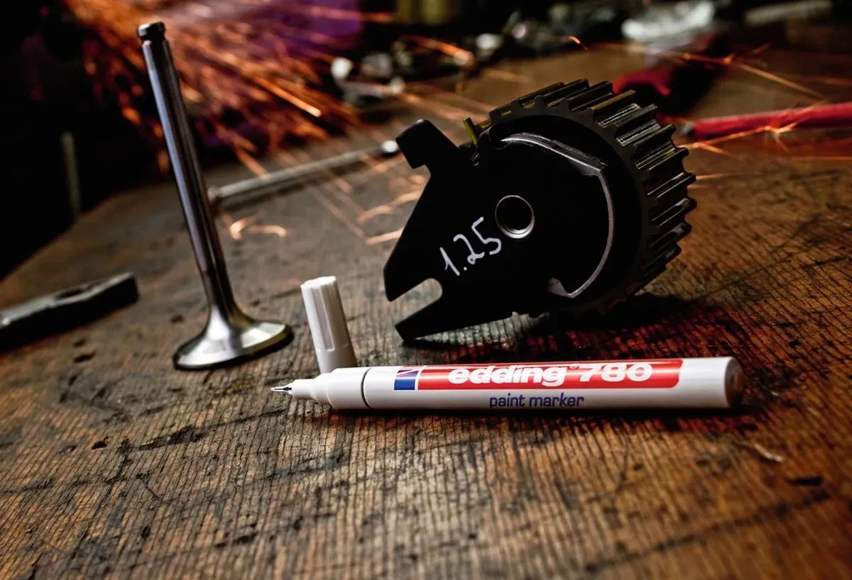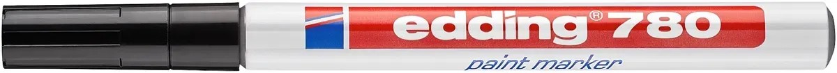 Lakkmarker vékonyvonalú, kiválóan fedő és tartós jelöléshez, akár sötét és átlátszó anyagokon is, pl. fém, üveg és műanyag. A fémfoglalatú műanyag írócsúcs vonalvastagsága 0,8 mm. A lakkszerű tinta gyorsan szárad, időjárásálló, rendkívül fényálló és kopásálló. A szín 400 C-ig ellenáll a magas hőmérsékletnek és 1000 C-on is látható marad. Megfelelő pótcsúcsok (edding 780 pótcsúcsok) elérhetők. Enyhe szagú tinta hozzáadott toluol / xilol nélkül. Magas minőségű alumínium test. Lakkmarker vékony vonalú, kiválóan fedő és tartós jelöléshez, akár sötét és átlátszó anyagokon is, pl. fém, üveg és műanyag. A fémfoglalatú műanyag írócsúcs vonalvastagsága 0,8 mm. A lakkszerű tinta gyorsan szárad, időjárásálló és rendkívül fényés kopásálló. Minden szín hőálló 400 C-ig. A fehér és ezüst szín 1000 C-on is látható marad. A fehér szín a Lufthansa Technik által ajánlott. Elérhető fekete, piros, kék, zöld, fehér, arany, ezüst és réz színben. A kék, zöld és réz szín elérhető különböző kivitelben, de ugyanazon minőségű tintával (lásd az edding 780 fényes lakkmarkert). Megfelelő pótcsúcsok (edding 780 pótcsúcsok) elérhetők. Enyhe szagú tinta hozzáadott toluol / xilol nélkül. Magas minőségű alumínium test. Használati utasítás: Rázza fel a markert még a kupak eltávolítása előtt. Távolítsa el a kupakot. Pumpálja a markert írócsúccsal lefelé, pl. egy darab papíron. Óvatosan pumpálja az írócsúcsot, amíg a tinta át nem itatja. A marker készen áll a használatra. Tárolja vízszintesen.