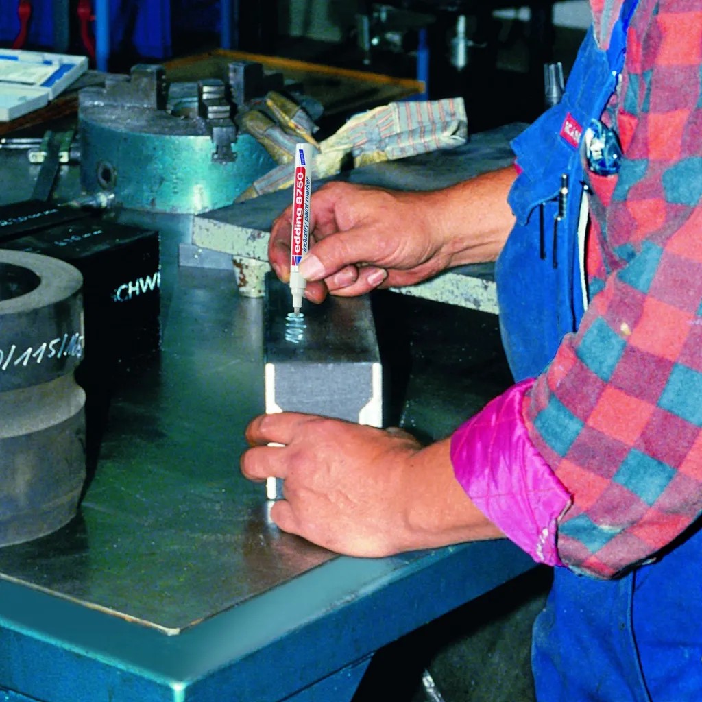 Ipari lakkmarker enyhén olajos, poros és sötét felületek rendkívül tartós jelölésére, feliratozására. A kerekített csúcs vonalvastagsága 2 mm - 4 mm. Az ipari lakkmarker rendkívül tartós tintája fényálló, gyorsan száradó, kiválóan fedő, valamint vízálló, kopásálló és ellenáll a sós víznek is. Megfelelő pótcsúcsok (edding 750 pótcsúcsok) elérhetők. Magas minőségű alumínium test. Ipari lakkmarker enyhén olajos, poros és sötét felületek rendkívül tartós jelölésére, feliratozására. A kerekített csúcs vonalvastagsága 2 mm - 4 mm. Az ipari lakkmarkerben található rendkívül permanens tinta fényálló, gyorsan száradó, kiválóan fedő, valamint vízálló, kopásálló és sós-vízálló. Elérhető fekete, piros, kék, zöld, sárga, narancssárga és fehér színben. Megfelelő pótcsúcsok (edding 750 pótcsúcsok) elérhetők. Magas minőségű alumínium test. Rázza fel a markert még a kupak eltávolítása előt. Távolítsa el a kupakot. Pumpálja a markert írócsúccsal lefelé, pl. egy darab papíron. Óvatosan pumpálja az írócsúcsot, amíg a tinta át nem itatja. A marker készen áll a használatra. Tárolja vízszintesen.
