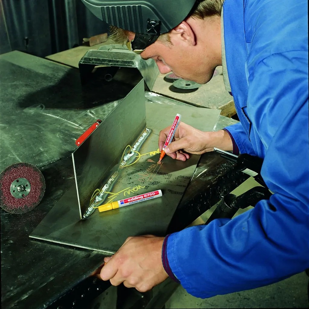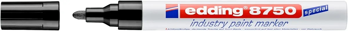 Ipari lakkmarker enyhén olajos, poros és sötét felületek rendkívül tartós jelölésére, feliratozására. A kerekített csúcs vonalvastagsága 2 mm - 4 mm. Az ipari lakkmarker rendkívül tartós tintája fényálló, gyorsan száradó, kiválóan fedő, valamint vízálló, kopásálló és ellenáll a sós víznek is. Megfelelő pótcsúcsok (edding 750 pótcsúcsok) elérhetők. Magas minőségű alumínium test. Ipari lakkmarker enyhén olajos, poros és sötét felületek rendkívül tartós jelölésére, feliratozására. A kerekített csúcs vonalvastagsága 2 mm - 4 mm. Az ipari lakkmarkerben található rendkívül permanens tinta fényálló, gyorsan száradó, kiválóan fedő, valamint vízálló, kopásálló és sós-vízálló. Elérhető fekete, piros, kék, zöld, sárga, narancssárga és fehér színben. Megfelelő pótcsúcsok (edding 750 pótcsúcsok) elérhetők. Magas minőségű alumínium test. Rázza fel a markert még a kupak eltávolítása előt. Távolítsa el a kupakot. Pumpálja a markert írócsúccsal lefelé, pl. egy darab papíron. Óvatosan pumpálja az írócsúcsot, amíg a tinta át nem itatja. A marker készen áll a használatra. Tárolja vízszintesen.