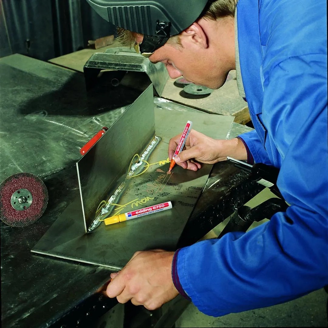 Ipari lakkmarker enyhén olajos, poros és sötét felületek rendkívül tartós jelölésére, feliratozására. A kerekített csúcs vonalvastagsága 2-4 mm. Az ipari lakkmarker rendkívül tartós tintája fényálló, gyorsan száradó, kiválóan fedő, valamint vízálló, kopásálló és ellenáll a sós víznek is. Megfelelő pótcsúcsok (edding 750 pótcsúcsok) elérhetők. Magas minőségű alumínium test.