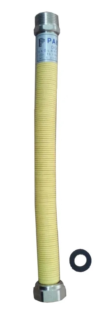 Kihúzható, bordás fém cső, sárga PVC borítással gázkészülékek szereléséhez.