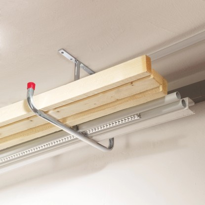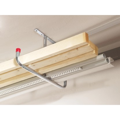 A teljes egészében horganyzott acélcsőből készült mennyezeti akasztó mennyezetre szerelésre alkalmas. T-alakú, mérete 430 mm x 295 mm, teherbírása 20 kg.