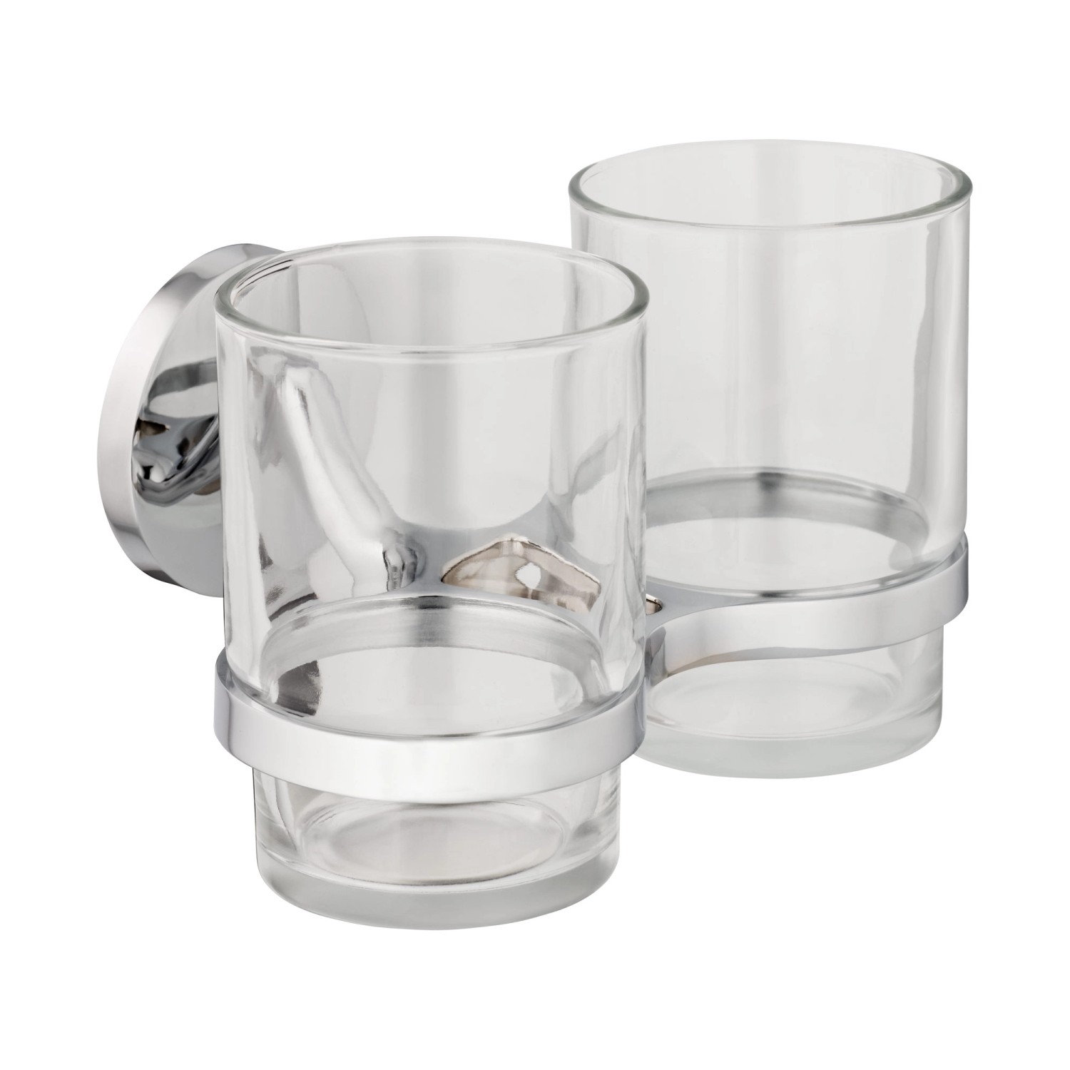 Az S300 fogmosópohár-szett két, átlátszó üvegből készült poharat és egy krómozott fali tartót tartalmaz. Ezáltal a szett egyszerre praktikus és elegáns kiegészítője fürdőszobájának.