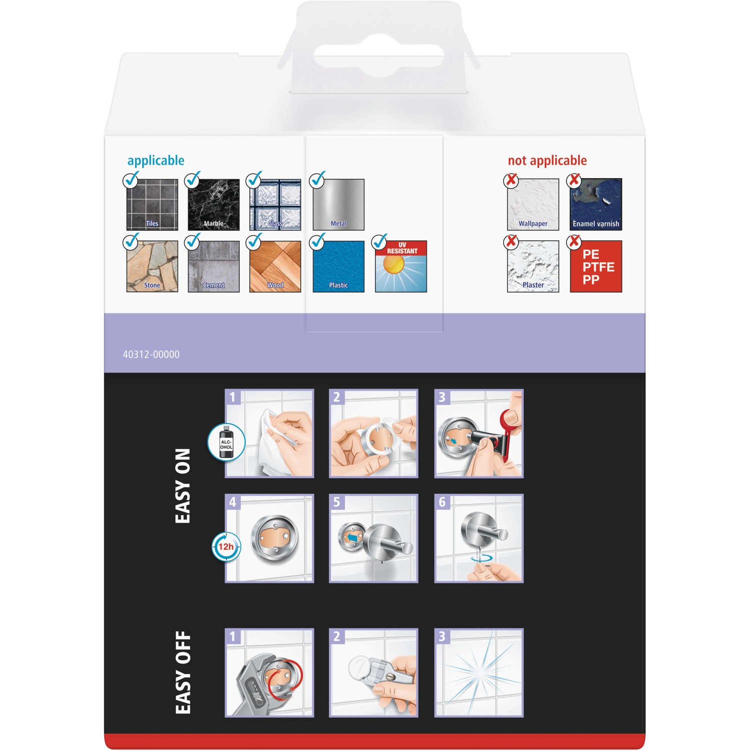 Nem használható tapétán, gipszvakolaton és más, nem tapadó bevonattal ellátott felületeken