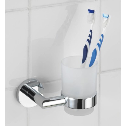 A Revello sorozat Power-Loc Uno fogmosópohara kiváló minőségű, krómozott és rozsdamentes sárgarézből készült. Az elegáns, szatinált üvegből készült levehető pohár helyet biztosít a fogkeféknek és a fogkrémnek. Ez teszi a praktikus tartót hasznos segédeszközzé a fürdőszobában. A Power-Loc ragasztórendszer olyan dekoratív fürdőszobai kiegészítőket és polcokat kínál, amelyek könnyen a falra rögzíthetők - csavarok, fúrás vagy dübelek nélkül. A Power-Loc rögzítősorozat azzal tűnik ki, hogy valamennyi hordozóképes felületen - pl. csempe, terméskő, üveg, beton, fém, fa és számos műanyag - rendkívül erős tartást biztosít. A rögzítőrendszer durva és kissé egyenetlen felületen is remekül tart. A high-tech kutatásból származó, speciálisan kifejlesztett ragasztónak köszönhetően a rögzítőkampók egyenként akár 80 kg húzóerővel is terhelhetők tartósan. A rögzítőkampók bármikor maradék nélkül eltávolíthatók, és rugalmasan áthelyezhetők. A ragasztórendszer már milliószor bizonyított az iparban és a szakmai világban.