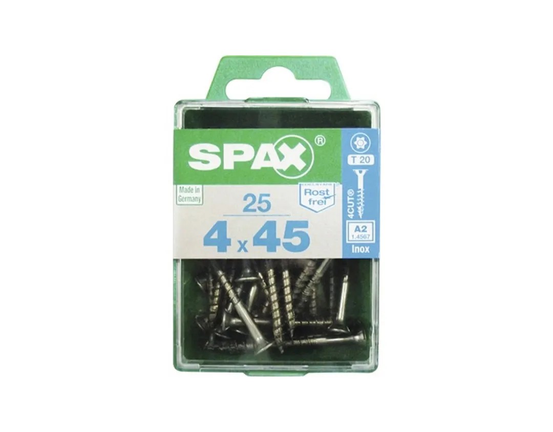 A süllyesztett fejű univerzális Spax csavarok és a T-Star plus hajtás nagy fokú korrózióvédelmet biztosítanak. Minden lehetséges kültéri alkalmazáshoz megfelelnek. Ezek a csavarok nem ellenállóak a tengervízzel és a savakkal szemben. A csavarok univerzálisan használhatók szinte mindenbe, például tűlevelű fába, mint a lucfenyő és a fenyő, valamint hagyományos faalapú lapokba (MDF, farostlemez, OSB) bármilyen előfúrás nélkül. Speciális menetgeometriájuknak köszönhetően a fúrási ellenállás sokkal kisebb, mint a hagyományos csavarok esetében, így kíméli csavarhúzója akkumulátorát, és egy feltöltéssel több csavarozást elvégezhet.