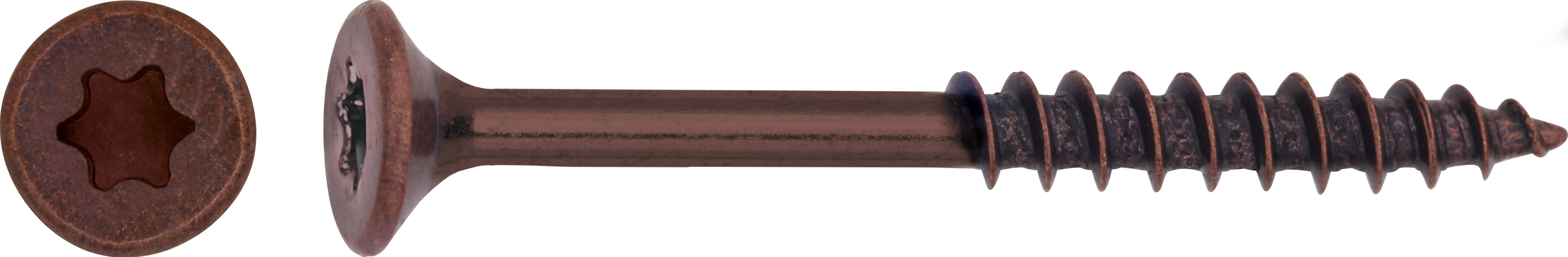 A TX-behajtást nagyon jó erőátvitel jellemzi, amely szinte teljesen megakadályozza az elcsúszást és a körbefordulást. A TX-behajtású csavarok kis szerszámokkal is becsavarhatók, így a nehezen hozzáférhető helyekre különösen alkalmasak. Ezenkívül csavarozáskor nem kell túlságosan nyomni az elcsúszás elkerülése érdekében. A csavar barnított acélból készült. A barnításnak köszönhetően dekoratív réteget kap, amely enyhe korrózió elleni védelmet is képez. A süllyesztett fejnek köszönhetően az anyag felületével egy síkban van. Így az anyagban nem keletkeznek éles szélek, ami csökkenti a sérülésveszélyt. Emellett a csavart könnyen be lehet vakolni, így nem látható.